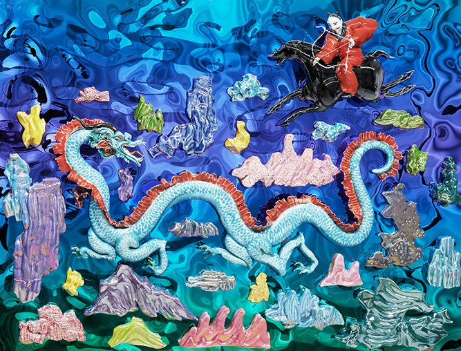 董琳的獨特之處在於她選擇了一條更為艱辛的創作路徑──深入景德鎮,沉浸於陶瓷工藝的傳統與創新之中。多年來,她耐住寂寞,在火與土的考驗中摸索出自己的藝術語言。她的創作不再局限於學院派的範式,而是從中國古代神話和民間造型中汲取意象,將沉澱著集體記憶的中國傳統符號,轉換為一種全新的藝術語彙。